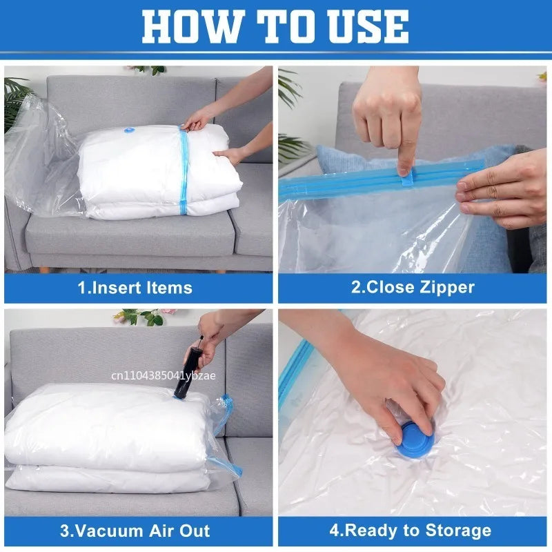 שקיות ואקום עמידות לחיסכון במקום – לאחסון בגדים, שמיכות ומצעים (1–5 יח׳)